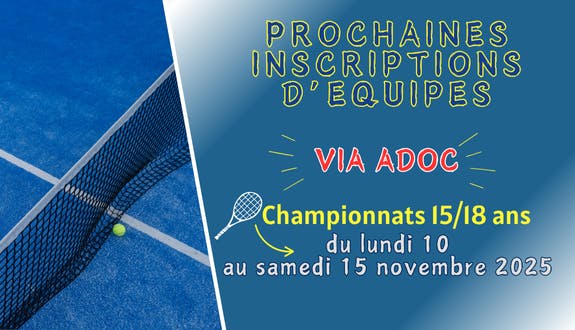 dès LUNDI 10, vous pourrez inscrire vos équipes 15/18 ans via ADOC :