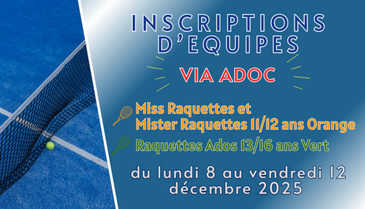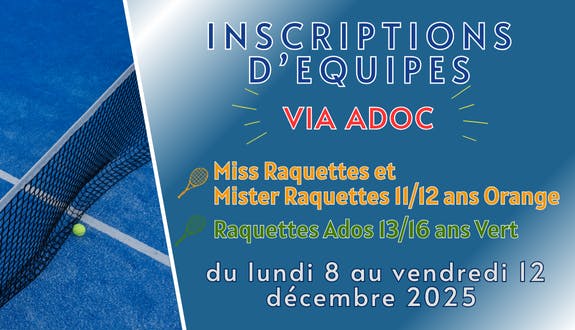 ✅ du LUNDI 8 au VENDREDI 12, vous pourrez inscrire vos équipes via ADOC :