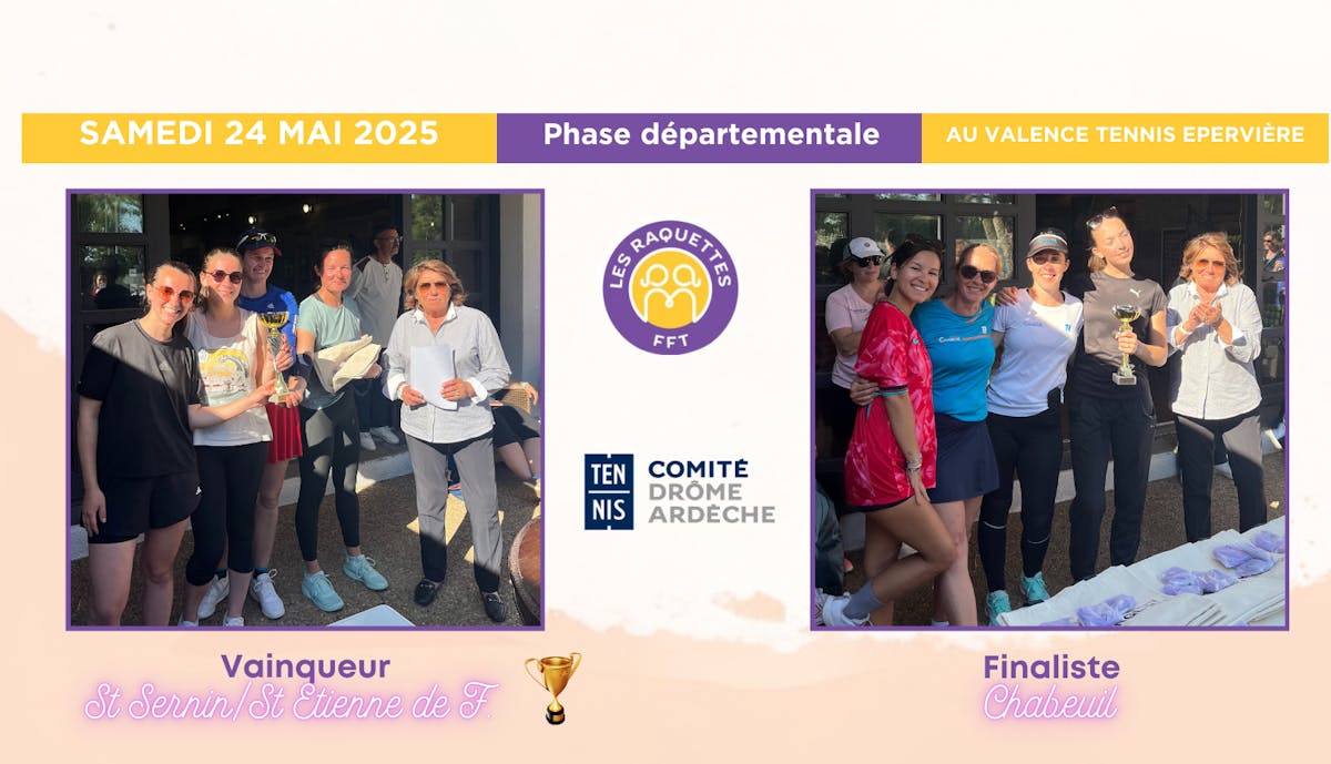 🙏 Le Comité remercie le Valence Tennis et son Président, Jean Jacques LE SAUX, pour le prêt de ses installations, Adeline CACHET CAMBOULIVES, responsable des Raquettes FFT, pour l'organisation, ainsi que Dominique MAUDUIT, juge-arbitre de la compétition.